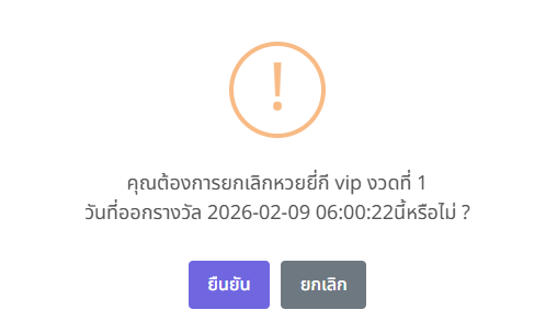 เมื่อผู้ดูแลระบบกดปุ่ม ยกเลิกงวดนี้ ในรายการประวัติการออกผลรางวัลหวยยี่กี VIP ระบบจะแสดงหน้าต่างแจ้งเตือนเพื่อยืนยันการดำเนินการยกเลิกงวดดังกล่าว