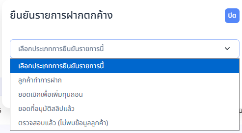 - การเลือกประเภทยืนยันที่ไม่ถูกต้อง อาจส่งผลต่อยอดเงินของลูกค้าในระบบ