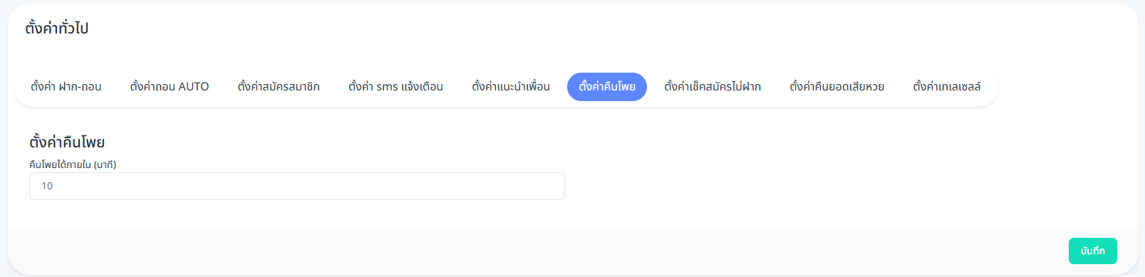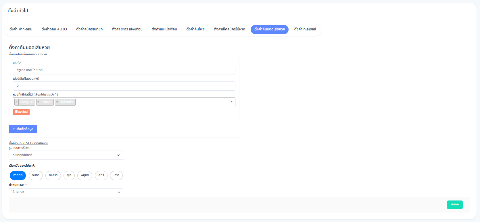 ตั้งค่าคืนยอดเสียหวย
