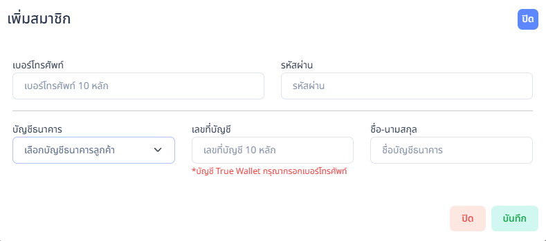 ระบุเลขบัญชีธนาคารของสมาชิก