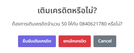 - ข้อความแจ้งว่า ต้องการเติมเครดิตหรือไม่