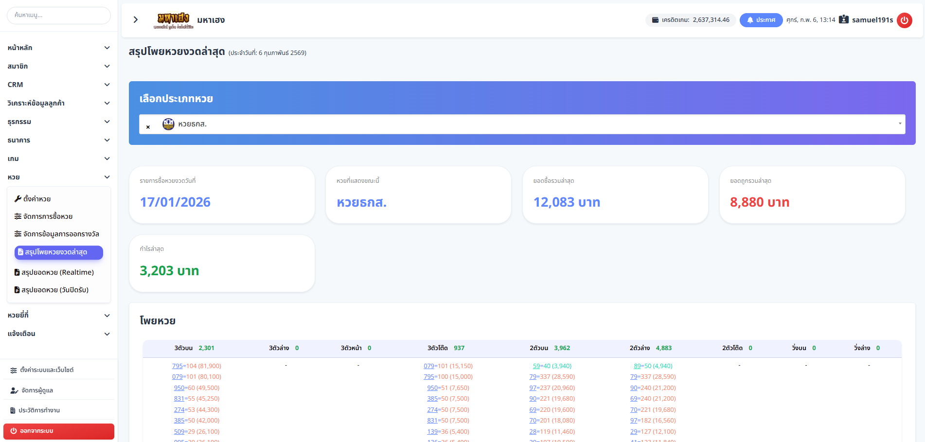 ตัวเลขที่แสดงจะช่วยให้ผู้ดูแลระบบสามารถวิเคราะห์แนวโน้มเลขอั้น เลขที่มีความเสี่ยงสูง และการกระจายยอดซื้อของสมาชิกได้อย่างสะดวก
