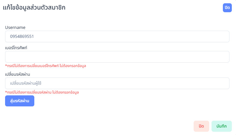 - ใช้สำหรับตั้งรหัสผ่านใหม่ให้สมาชิก